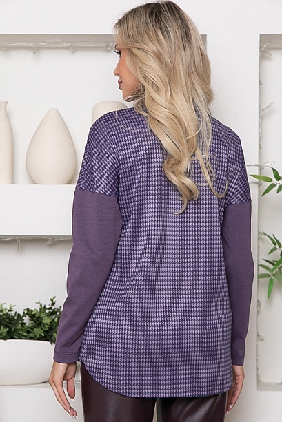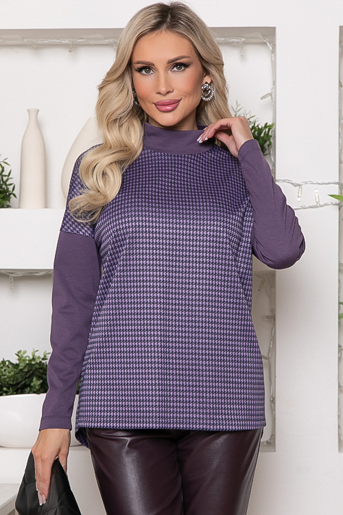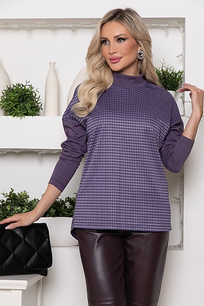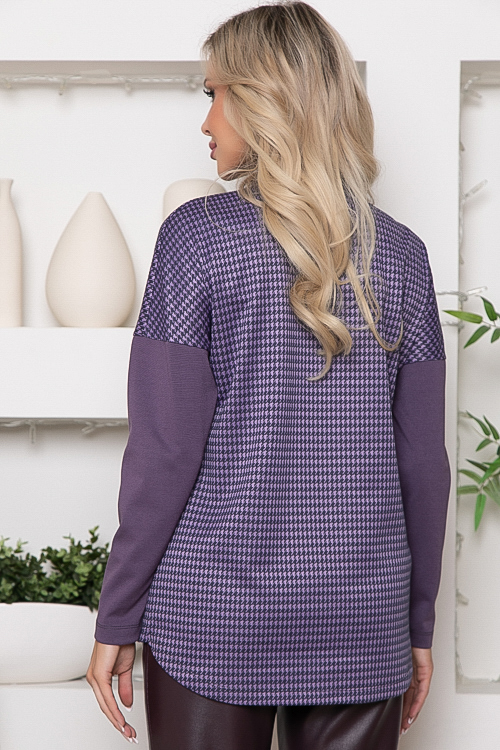 Комбинированный джемпер из жаккардового трикотажного полотна в гусиную лапку и и однотонного джерси.