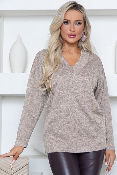 Джемпер из трикотажного полотна свободного силуэта с V-вырезом горловины.