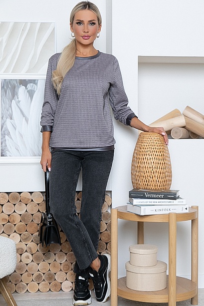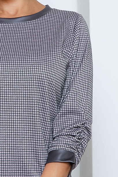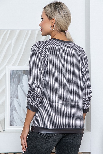 Джемпер из жаккардового трикотажного полотна с отделкой эко кожа.
