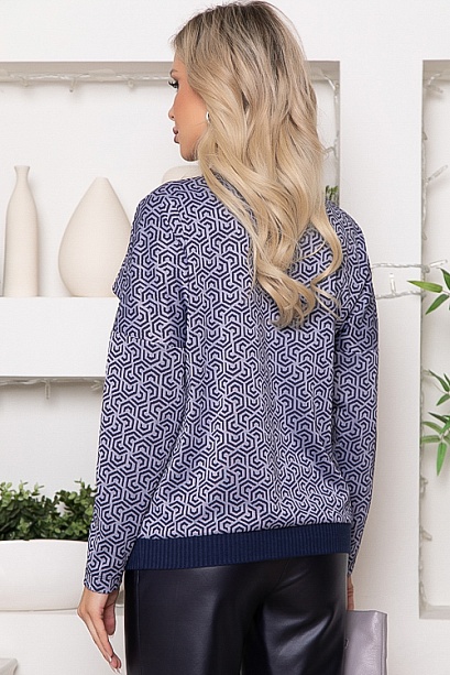 Джемпер из жаккардового трикотажного полотна свободного силуэта с отделкой трикотажной рибаной по V-горловине.