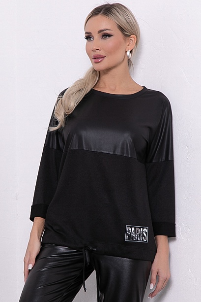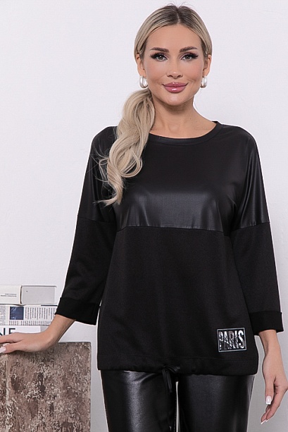 Джемпер из трикотажного полотна свободного силуэта с кулиской по низу.