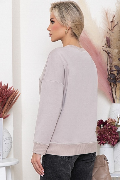 Джемпер из трикотажного полотна джерси свободного силуэта с отделкой трикотажной рибаной.