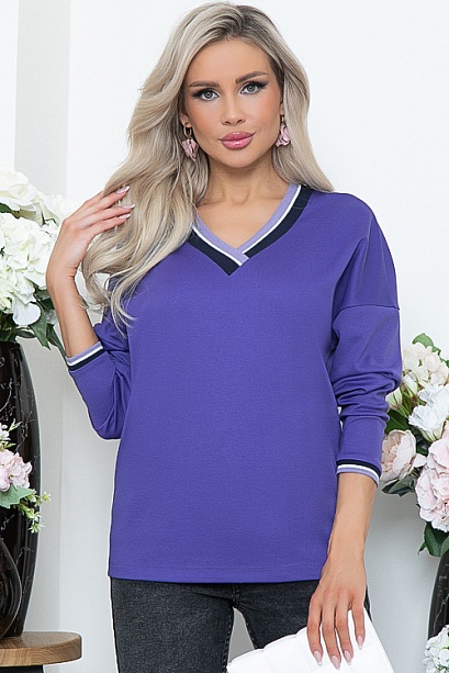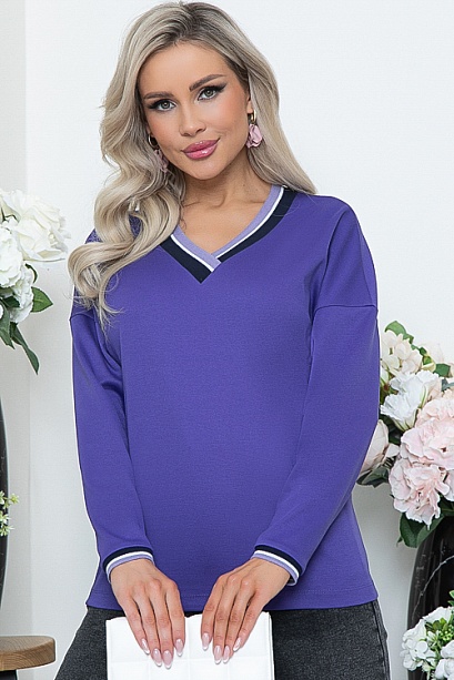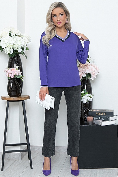 • Джемпер свободного силуэта из трикотажного полотна джерси  с V-образным вырезом горловины. Манжеты и рукава обработаны трикотажными подвязами.