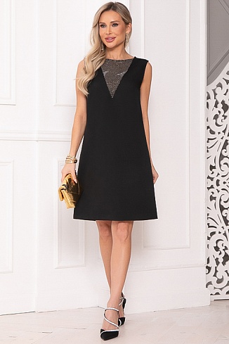 - Платье из костюмной ткани А-образного силуэта.Горловина оформлена нарядной вставкой из нарядной сетки.