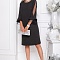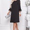 - Платье из костюмной ткани полуприлегающего силуэта.В среднем шве спинки застежка молния и разрез по низу.По переду декоративная вставка из трикотажа с блеском.