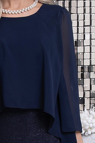 Платье А-образного силуэта из трикотажного полотна с шифоновыми рукавами и кокеткой по переду из сетки с бархатом и пайетками.Цвет: т.синий.