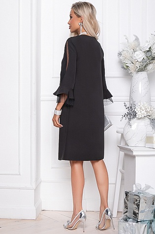 Платье из текстильного полотна А-образного силуэта с красивыми рукавами из сетки с пайетками.