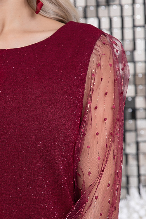 - Блузка из трикотажного полотна с люрексом и втачными рукавами из сетки.