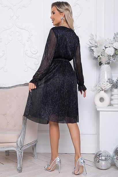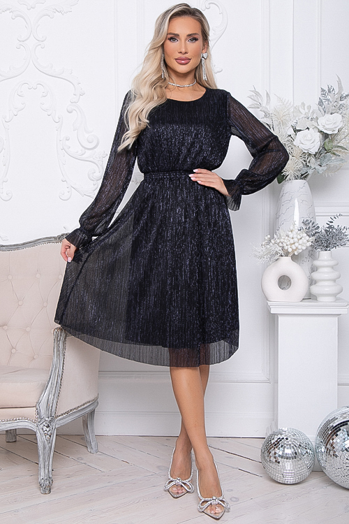 - Нарядное платье из сетки-гофре с легким блеском,отрезное по линии талии с расклешенной юбкой.Платье посажено на трикотажный подклад.