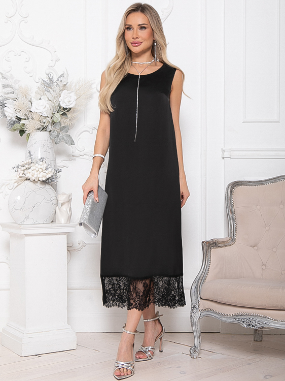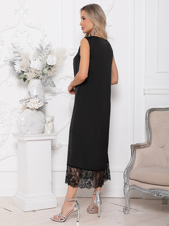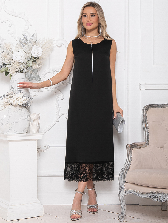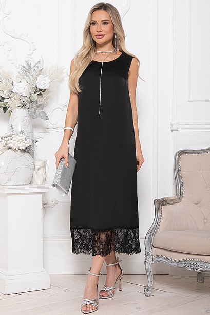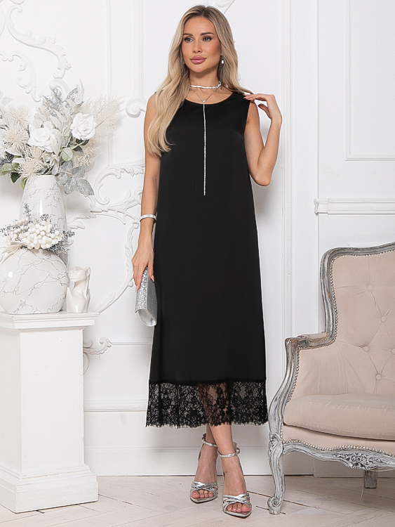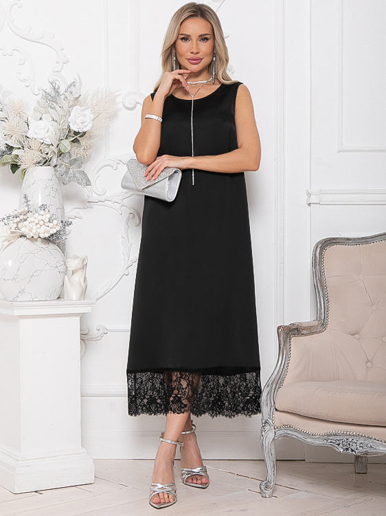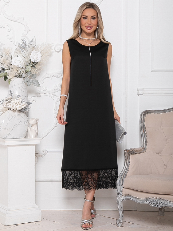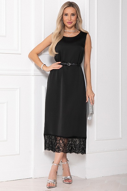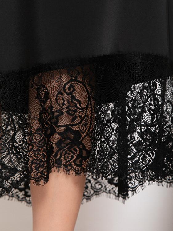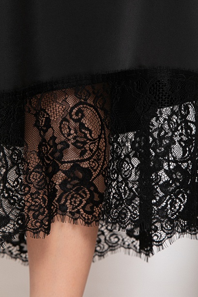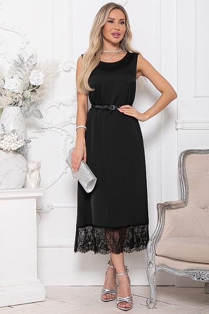 - Платье из шелка А-образного силуэта по низу украшено кружевом.Ремень в комплект не входит.