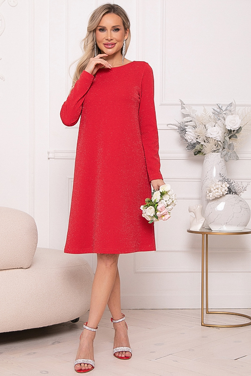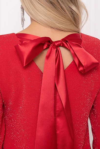 - Платье А-образного силуэта из трикотажного полотна с легким люрексом.Изюминка платья-вырез по спинке с завязывающимся бантом из шелка.