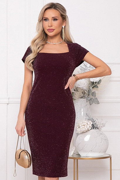 - Платье полуприлегающего силуэта из трикотажного полотна с легким люрексом с эффектным фигурным вырезом.