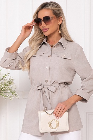 Жакет из комфортной льняной ткани прямого,свободного силуэта с центральной застежкой на пуговицы.По переду накладные карманы с клапанами.По талии регулируемая кулиска.
