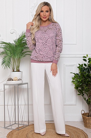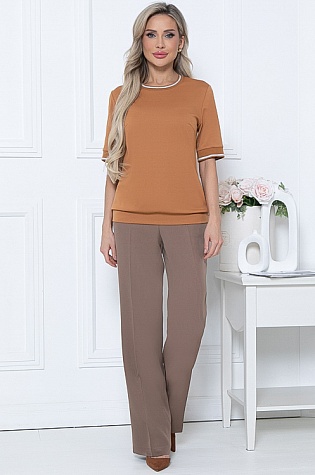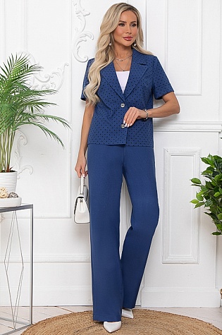 Комплект состоящий из блузки и брюк.Блузка свободного силуэта из текстильного полотна.