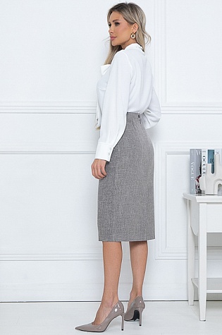 - Юбка из костюмной ткани на притачном поясе,посажена на подклад.В среднем шве спинки потайная молния,снизу-шлица.