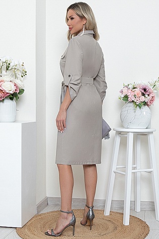 - Платье из костюмной ткани полуприлегающего силуэта,отрезное по линии талии,по бокам паты(можно отрегулировать талию сместив пуговицы).В среднем шве спинки застежка молния.
