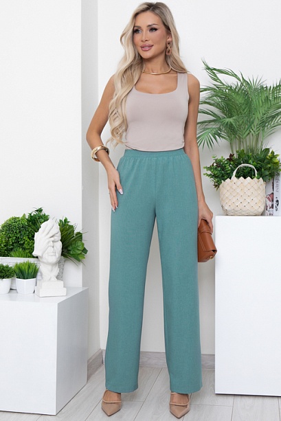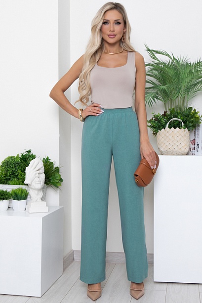 Брюки из легкой костюмной ткани прямого,свободного силуэта.Пояс на эластичной резине.