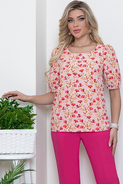 Комплект состоящий из блузки и брюк.Блузка свободного силуэта из текстильного полотна.