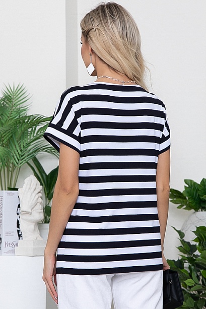 Блузка из вискозного трикотажного полотна в полоску с цельнокроеными рукавами (ткань производство Турция).По переду украшена декоративным элементом.