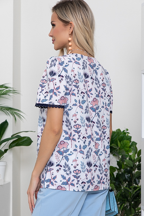 Блузка из текстильного полотна свободного силуэта.