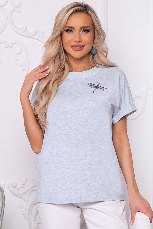 Футболка из трикотажного полотна свободного силуэта с отделкой из трикотажной рибаной и декоративным элементом по полочке.Ткань производство Турция-кулирная гладь и трикотаж рибана компаньон.