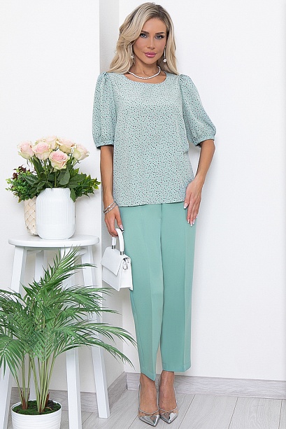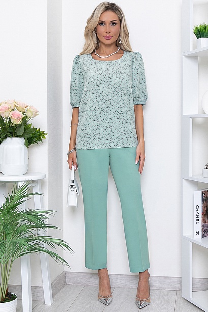 - Комплект состоящий из блузки и брюк.Блузка свободного силуэта из текстильного полотна.