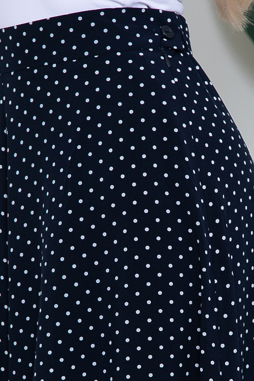 - Брюки-юбка из текстильного полотна свободного силуэта с притачным поясом и застежкой молния в боковом шве.