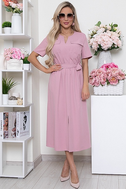 Платье из легкой костюмной ткани ,отрезное по линии талии, присборено на резину с расклешенной юбкой.Пояс из основной ткани в комплекте