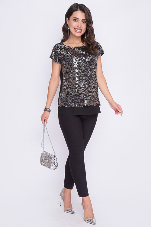 Комбинированный топ,перед из сетки с пайетками на подкладе из креп шифона,спинка двойная из креп шифона.