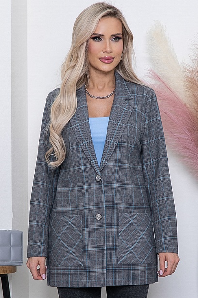 Жакет из комфортной,качественной костюмной ткани(ткань Производство Турция) свободного силуэта,в боковых швах разрезы.Центральная застежка на две пуговицы.По переду удобные накладные карманы.Рукава втачные длинные.