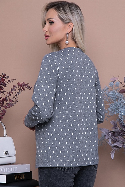 Жакет из плотного трикотажного полотна с центральной застежкой на петли и пуговицы.