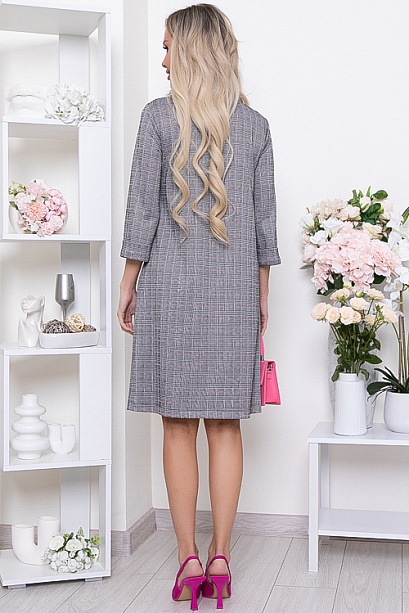 Платье трапецевидного силуэта из жаккардового трикотажного полотна в клетку.