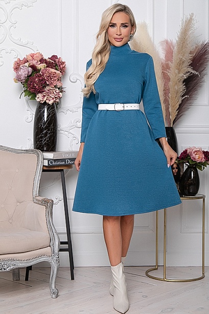 Платье трапецевидного силуэта из плотного трикотажного полотна.Ремень в комплект не входит.