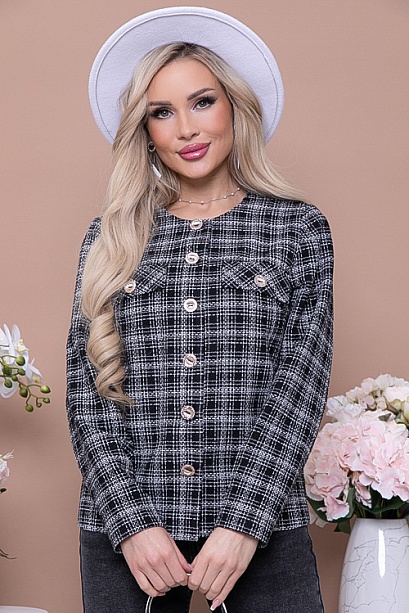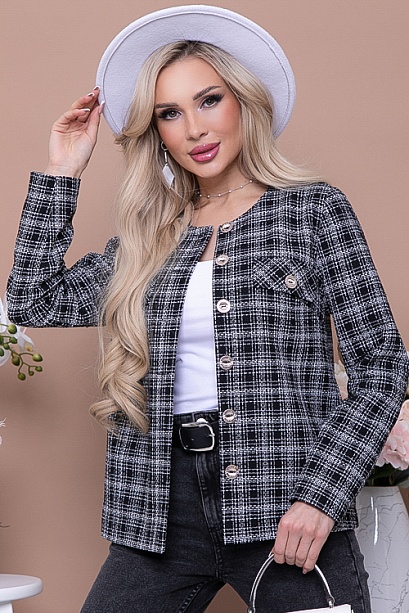 - Жакет в стиле шанель из костюмного твида(ткань производство Турция) с центральной застежкой на пуговицы свободного силуэта.По переду декоративные клапаны.