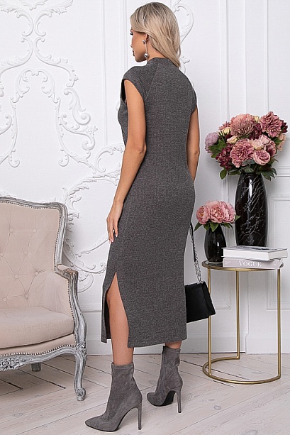 - Платье из трикотажного полотна длиной миди с разрезами по бокам.