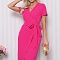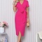 Платье из костюмной ткани.Перед с запахом по лифу и по юбке.Рукав втачной.Приталенность регулируется поясками, втаченными в талиевые вытачки переда.Застежка на потайную молнию в среднем шве спинки.