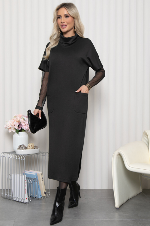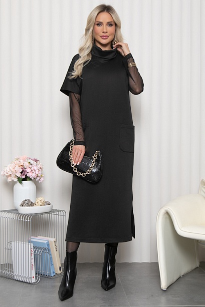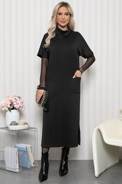 - Платье длиной миди из комфортного трикотажного полотна(ткань производство Турция) прямого силуэта с цельнокроеными рукавами, воротником-хомут и удобными накладными карманами. В боковых швах по низу обработаны разрезы.