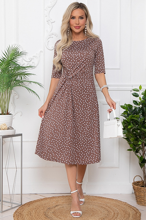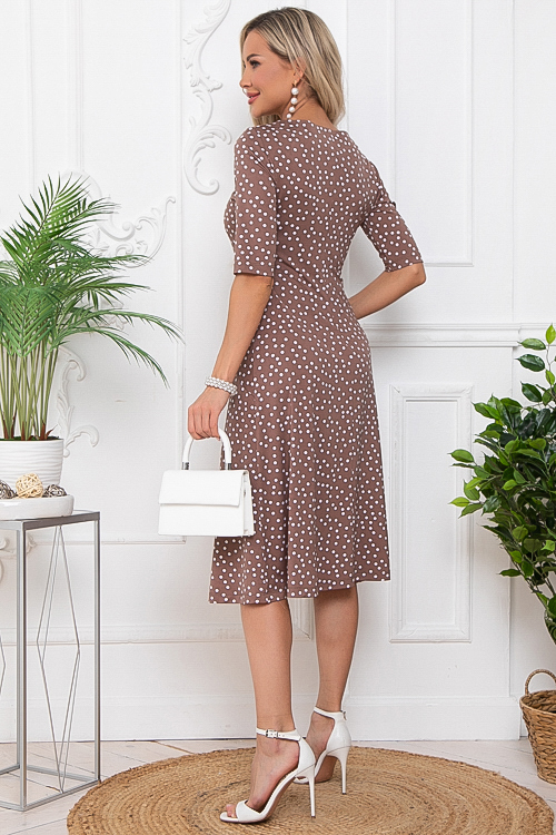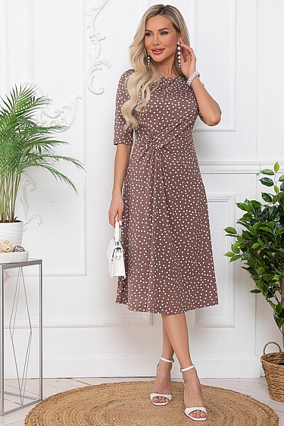 - Платье из трикотажного полотна А-образного силуэта. Перед платья с эффектной драпировкой в области талии с одной стороны.