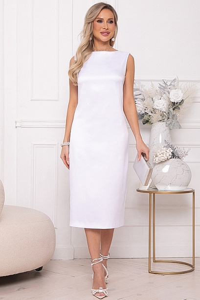 - Платье футляр полуприлегающего силуэта из плотного шелка с вырезом горловины лодочка, в среднем шве спинки застежка молния и разрез по низу.