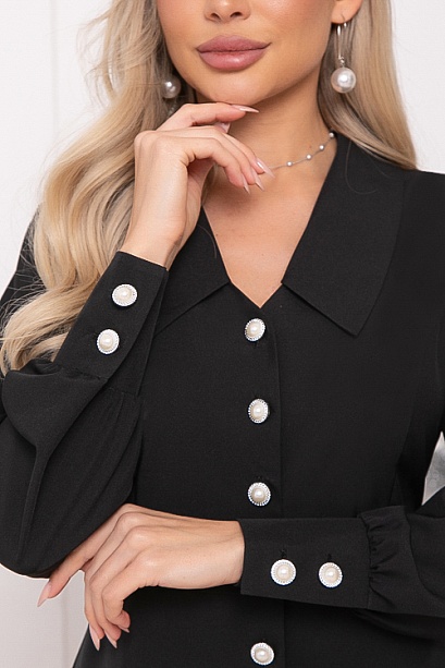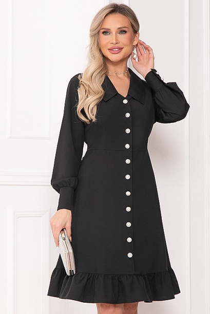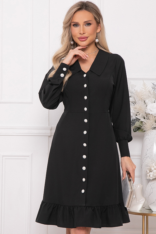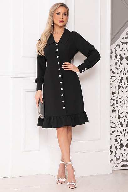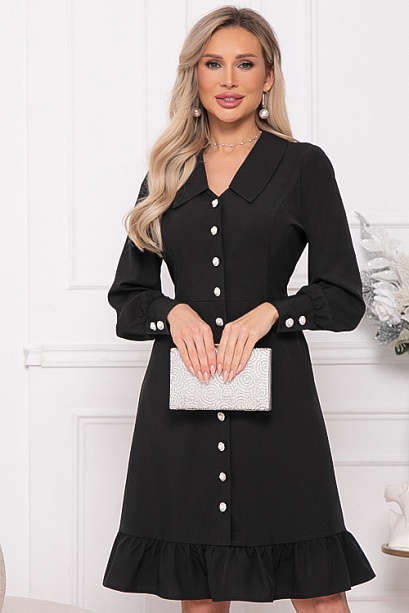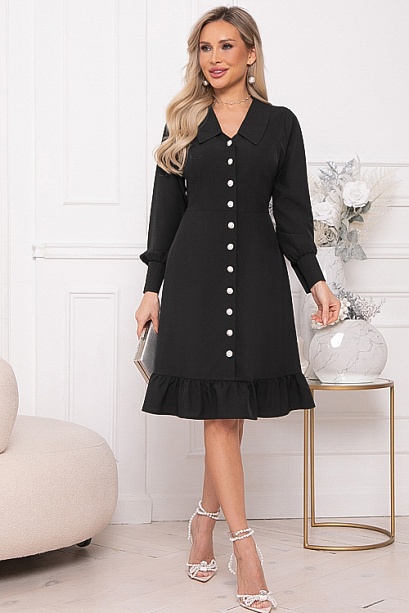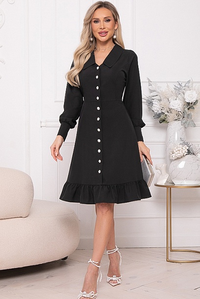 - Нарядное платье из текстильного полотна в боковых швах талии пояски-завязки,можно завязать сзади и скорректировать талию.Отрезная юбка А-образного силуэта с воланом по низу.Изюминка платья воротник ,манжеты и шикарные жемчужные пуговицы.По полочке центральная застежка до волана.