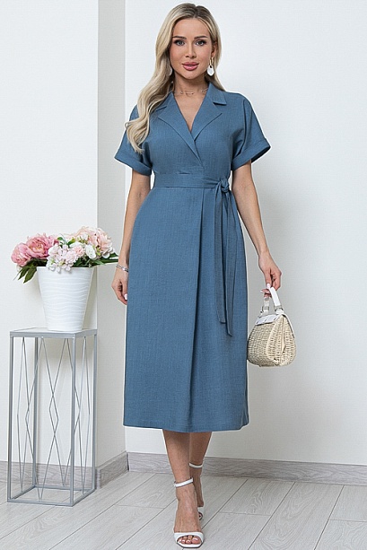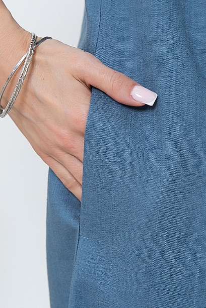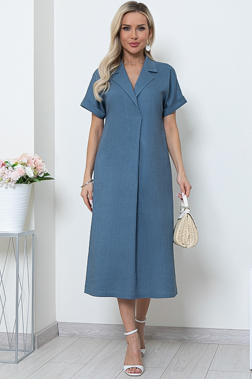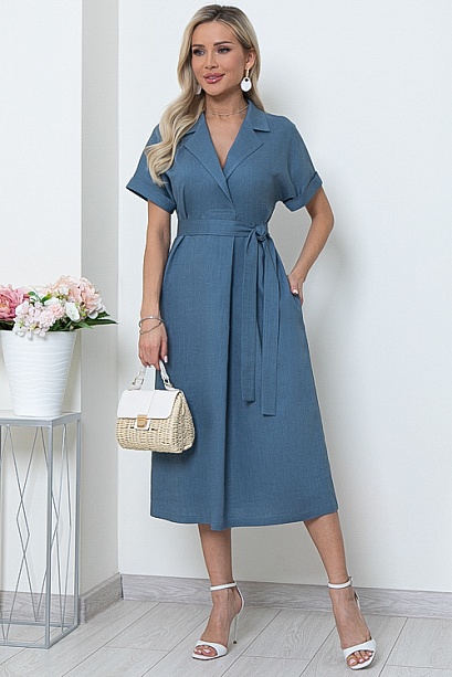 - Льняное платье свободного А-образного силуэта с цельнокроеными рукавами.Воротник отложной с лацканами,переходящими в мягкую складку по центру переда.В боковых швах функциональные карманы.Пояс из основной ткани в комплекте.