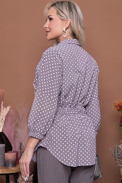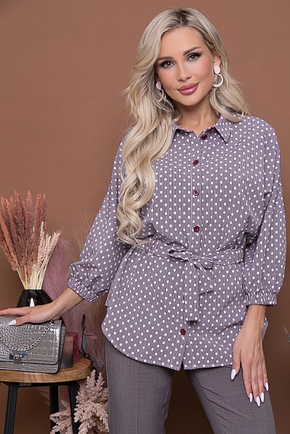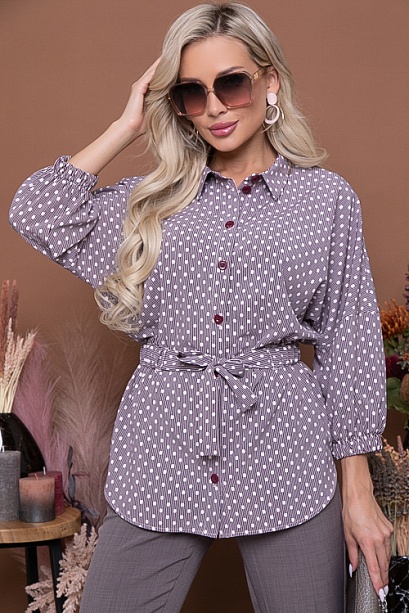 Рубашка из текстильного полотна свободного силуэта,с центральной застежкой на пуговицы и отложным воротником на стойке.