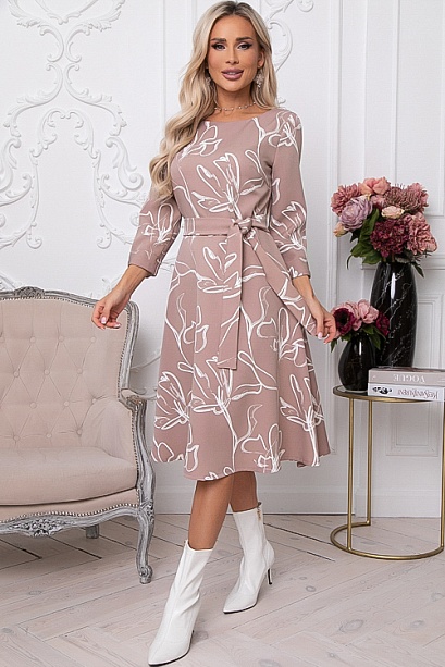 - Платье из костюмной ткани, отрезное по лини талии, с расклешенной юбкой, по спинке застежка молния. В комплекте пояс из основной ткани.