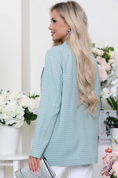 - Жакет из комфортной костюмной ткани с отложным воротником с лацканами свободного силуэта, с центральной застежкой на две пуговицы и удобными накладными карманы.