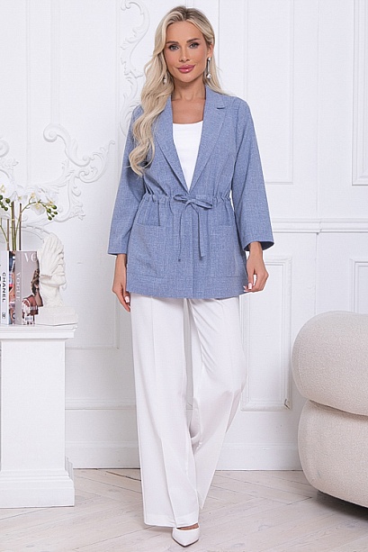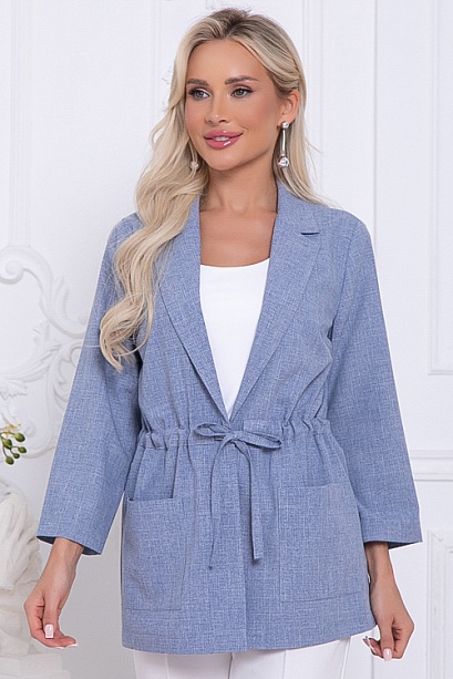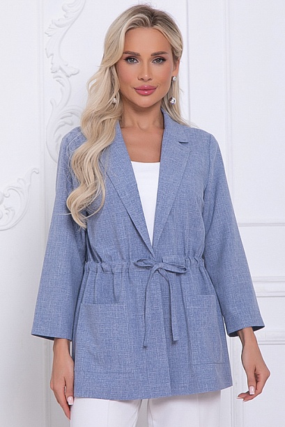 - Жакет из легкой костюмной ткани свободного силуэта. Воротник отложной с лацканами. По полочке функциональные накладные карманы.
