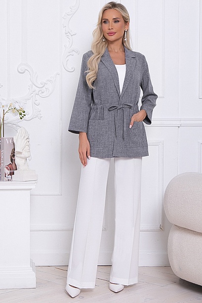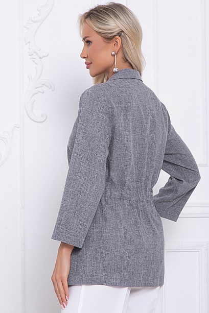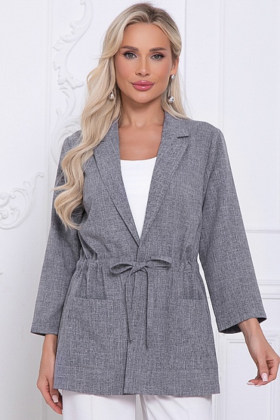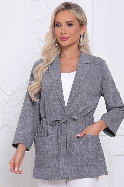 - Жакет из легкой костюмной ткани свободного силуэта. Воротник отложной с лацканами. По полочке функциональные накладные карманы.
