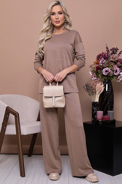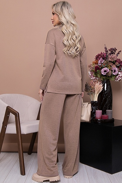 • Брючный комплект из мягкого,комфортного трикотажного полотна.Джемпер свободного силуэта с разрезами по бокам.Брюки свободного силуэта расклешенные к низу,с высокой посадкой и эластичной резиной по поясу.По бокам функциональные карманы.Костюм идеально вариант для спорта,отдыха и прогулок.Ремень в комплект не входит.