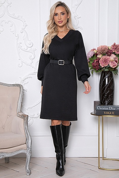 - Платье из трикотажного полотна свободного силуэта с V-вырезом горловины и разрезами по бокам.Ремень в комплект не входит.