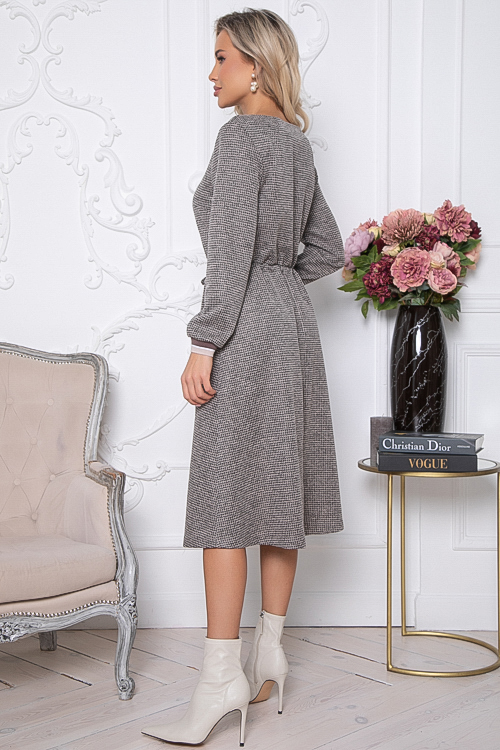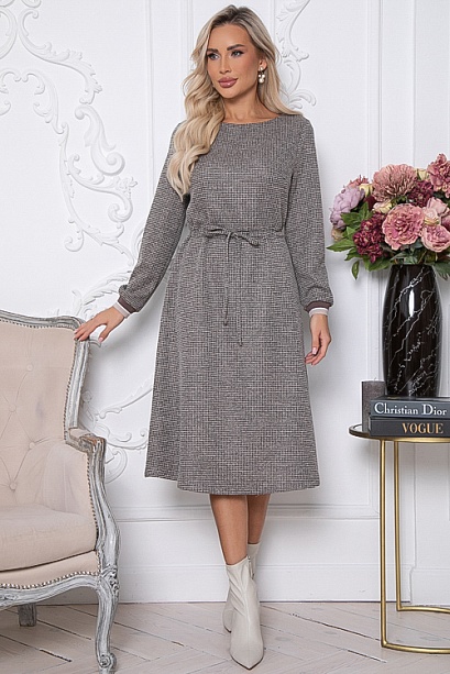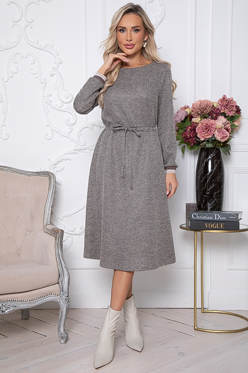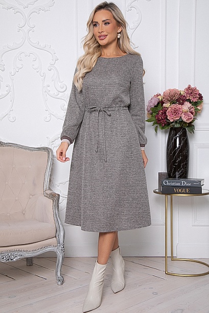 - Платье из трикотажного полотна, отрезное по линии талии с расклешенной юбкой. Между лифом и юбкой втачена кулиска, которая позволяет регулировать ширину платье по талии. Рукав втачной оканчивающийся трикотажным подвязом.