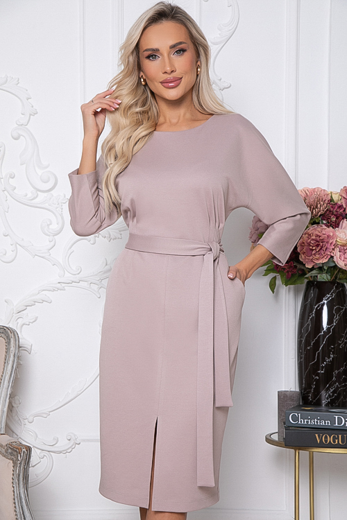 - Платье из трикотажного полотна джерси полуприлегающего силуэта с цельнокроеными рукавами.
